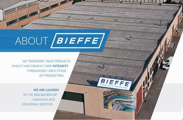 Con oltre 30 anni di esperienza al servizio dei suoi clienti, BIEFFECO si propone come partner ideale in grado di garantire una soluzione completa ed efficiente per qualsiasi sistema di movimentazione, trasporto e trattamento termico. Quasi tutte le aziende oggi si focalizzano sul prodotto o sul servizio, dimenticandosi di ascoltare le reali necessità del cliente. La mission di BIEFFECO è aiutare il cliente nel definire la strategia di sviluppo della sua linea di packaging, analizzando tutti i fattori determinanti per un'efficienza globale, gestendo tutte le variabili di progetto, assicurando infine la soluzione più flessibile e vantaggiosa.