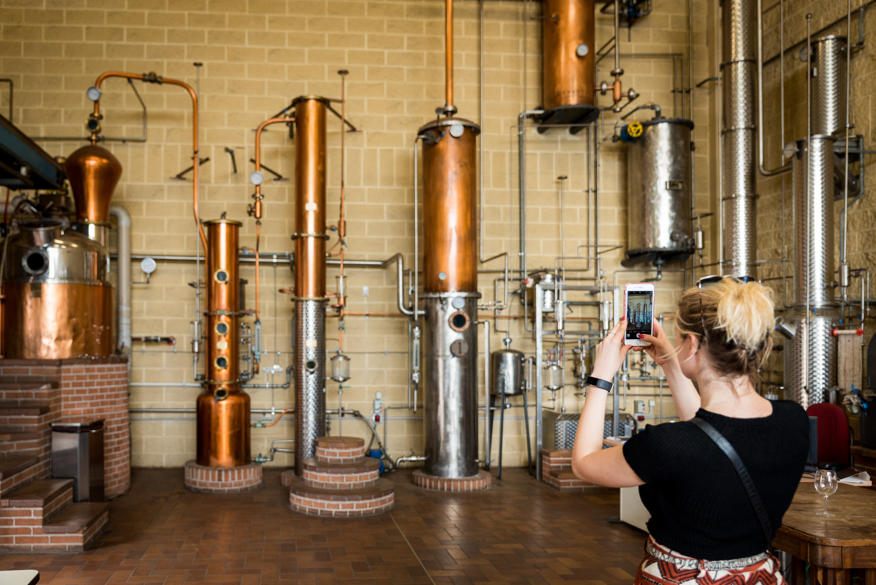 Mantenersi a debita distanza da alambicchi, colonne di distillazione e impianti di caricamento degli alambicchi per temperature elevate e rischi correlati al funzionamento dei macchinari.