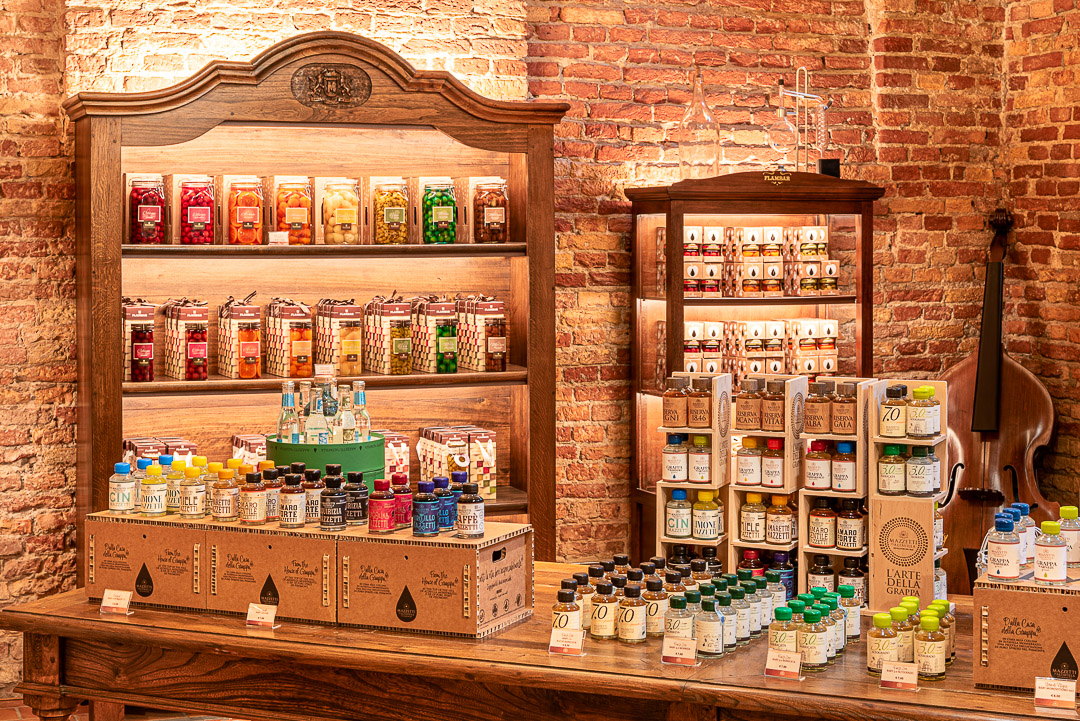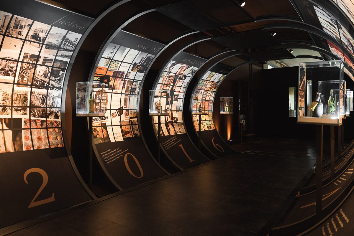 La visita consente di ammirare il Parco Storico con la Cappella Votiva risalente al 1808, il giardino, il piazzale delle vinacce, la distilleria (attiva nel periodo di Fabbriche Aperte), la cantina di invecchiamento, la galleria della grappa con bottiglie ed etichette storiche e il grappa store. Sono previste degustazioni guidate di spirits.
